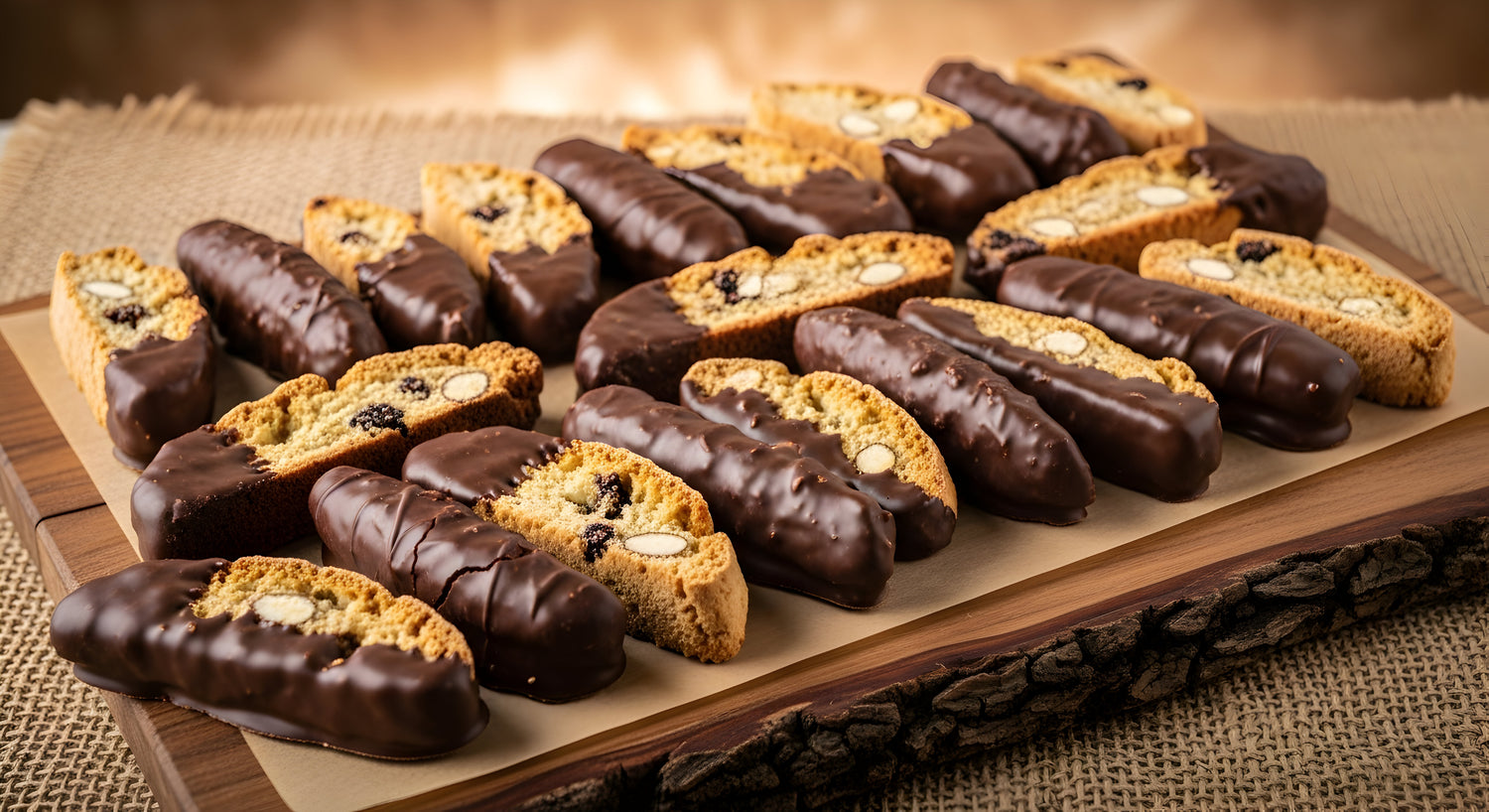 The combination of almonds and chocolate is a classic for a reason! Our almond chocolate bar perfectly pairs the smooth, intense allure of our 70% dark chocolate with the rich, buttery crunch of deeply roasted California almonds and toasted biscotti. Each bite delivers a harmonious blend of nutty warmth and decadent chocolate.