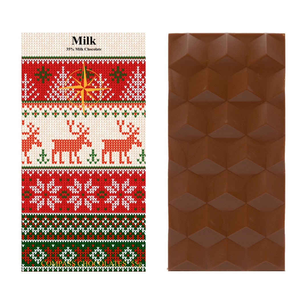 Our decadent milk chocolate doesn’t need bells and whistles. Each bite melts smoothly on the tongue, balancing creamy sweetness with rich cocoa notes—a timeless favourite that brings holiday cheer to every chocolate lover.