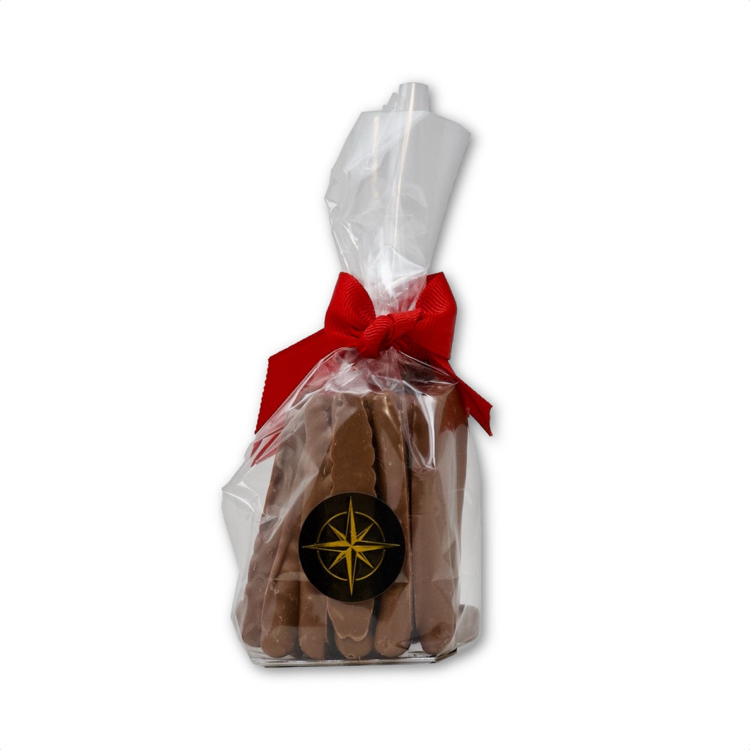 Inspired by the elegant orangettes of 19th-century Paris, our Milk Chocolate Covered Orange Batons celebrate the harmony of citrus and chocolate. Each baton pairs a soft, candied orange peel with a smooth coating of rich milk chocolate— timeless, refined, and irresistibly elegant.